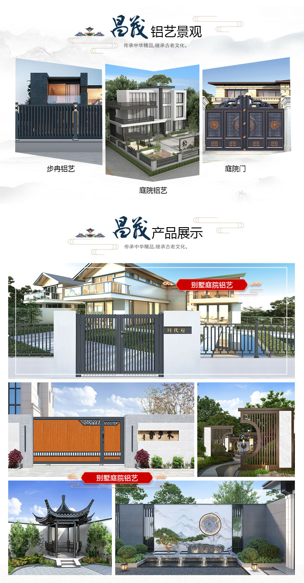 濰坊昌茂金屬制品有限公司是一家專業生產各種鋁藝大門、鋁藝護欄、鋁藝陽臺護欄、鋁藝樓梯扶手、鐵藝護欄、鐵藝大門、鋅鋼護欄、道路護欄、鋁藝配件等的專業廠家。本公司是一家集開發、安裝、生產鋁門類、護欄類產品為一體的現代企業。